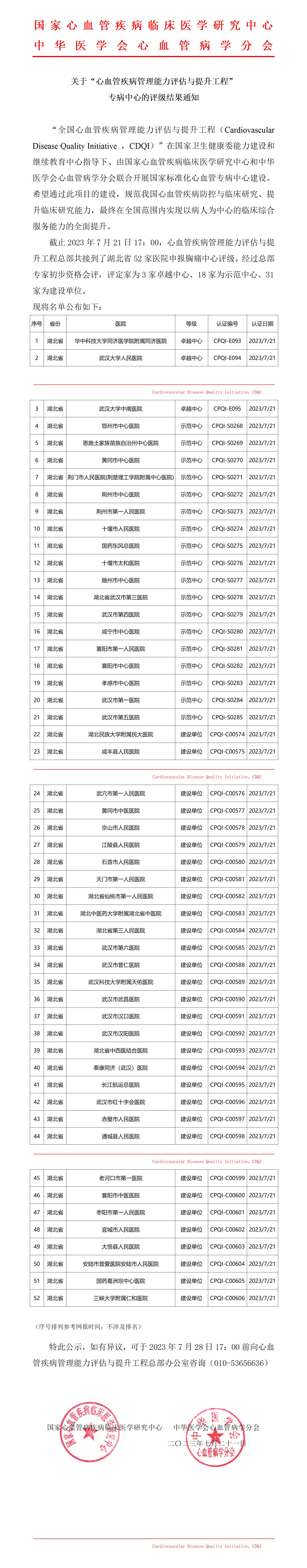 关于国家标准化胸痛中心评级结果通知-湖北省