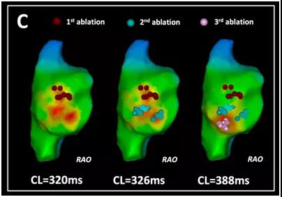 图2. 图1患者在"步进式"消融过程中多次重新标测。