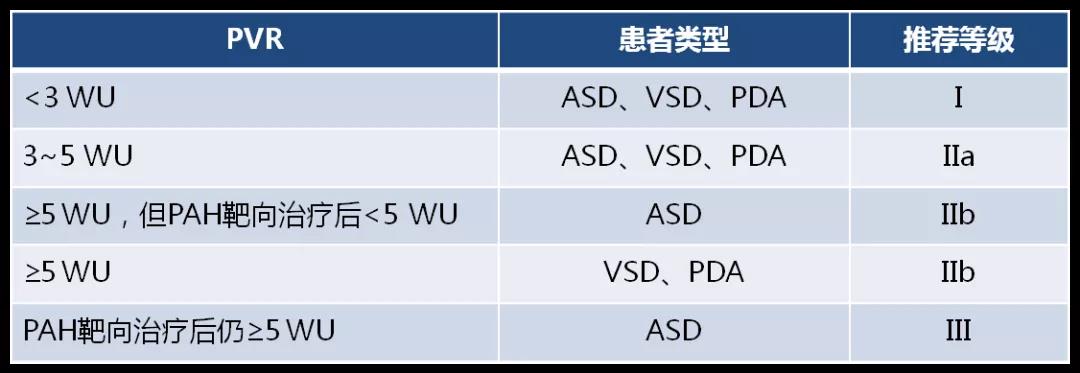 左向右分流合并PAH的患者,必须进行肺血管阻力(PVR)的有创性检测(IC),并根据测量的PVR调整关闭分流的建议,如表1所示。